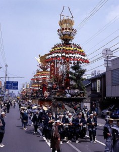 幕は藍地に三獣唐子遊模様を織り出したつづれ織で、