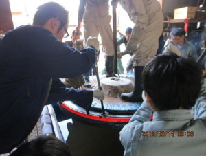 | 10月14日(日)伏木古國府・黒田鉄工所(黒田宗一代表)で鉄輪の焼き嵌めが行われました。 |