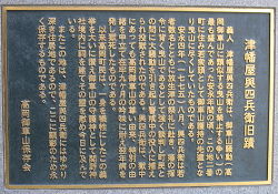 掲載写真「津幡屋與四兵衛旧蹟」の銘板にはこのように記してある。